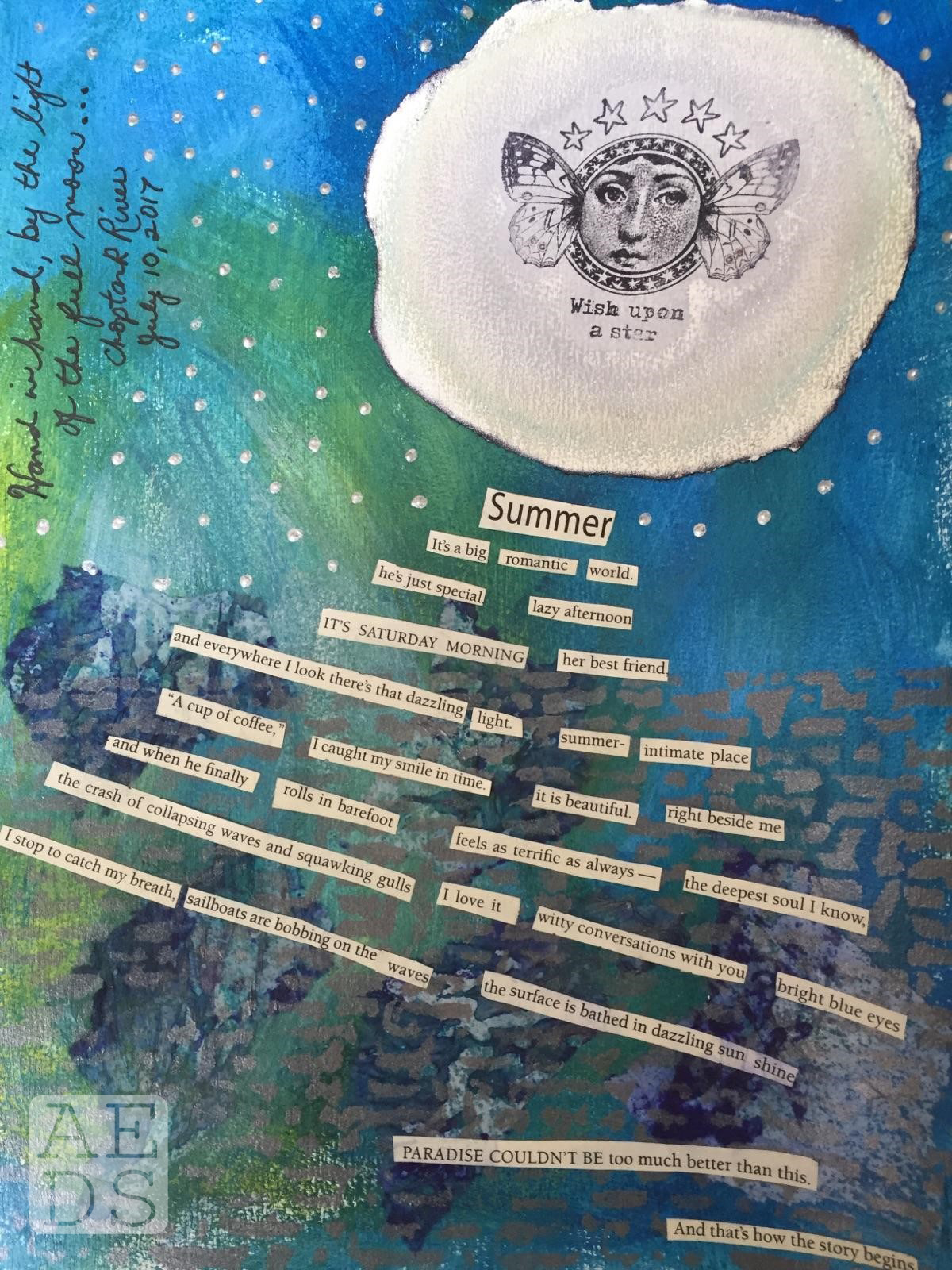 First, let me know how you feel about found poetry and if you use it in your art or journal. Second, I think I’ve used more “air quotes” in this post than any other, too funny. And third, I’m going to start posting on Friday only. Two posts each week are a lot and I thought I would cut back since I will also be posting to The Crafter’s Workshop blog (#TCWdesignteam!!) twice a month starting in August. Stay cool and make art, people!! And cancel any subscriptions that you need to! I hope you’ve enjoyed this post and will join me every Friday for more blog posts at arteverydaystudio.blogspot.com and on Facebook and Instagram.
